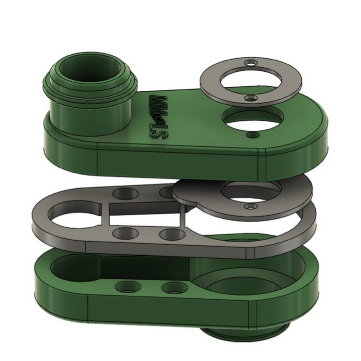 Resin 3D Printed in Siraya Tech “Build” resin, incorporates a 5/64″ thick laser-cut Delrin support in the top, laser-cut foam gasket between the halves, Laser-cut polyurethane foam gasket to the spindle,  four rare earth magnets hold the halves together & make it easy to change bits and assorted length silicone 1-1/4″ pickup hoses. My designer Dave Kern and I put in a bunch of hours to get this done right.