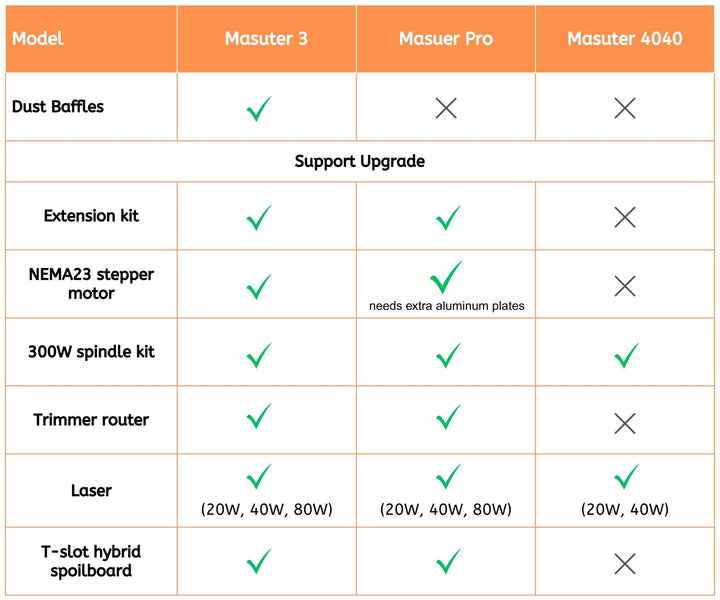 Structure Upgrade: Masuter Pro is an All-Aluminum CNC router, which makes the machine sturdier than the last version. The Z-axis uses linear rails instead of the optical axis, this greatly improves the stability and accuracy.