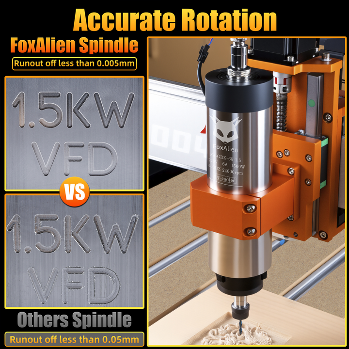 I just purchased a Vasto XL V2, and it's a massive upgrade over my XP-PRO! I decided to try the FoxAlien 1.5KW VFD spindle, and here's my results:
