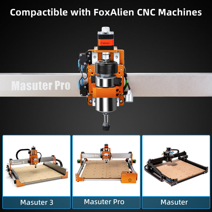 FoxAlien 300W CNC spindle upgrade kit is designed for 3018-SE V2 and Masuter CNC router. The spindle can directly fit into the clamp of 3018-SE V2 and Masuter.