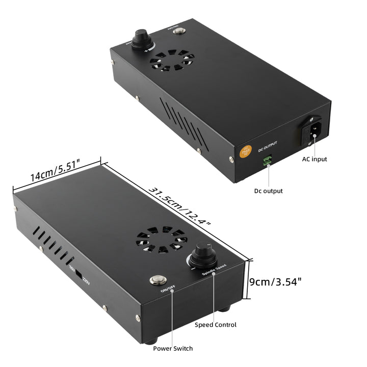 • It has a power switch and speed adjust button for convenient operation. Spindle speed can be adjusted manually.