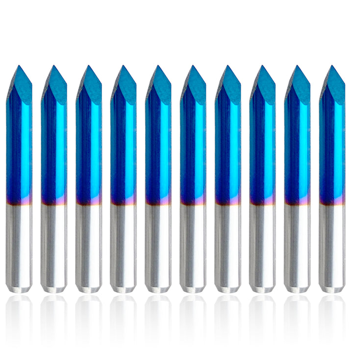 CNC Router Bits Triangular Pyramid, 60 Degree 0.1mm Tip, 10PCS
