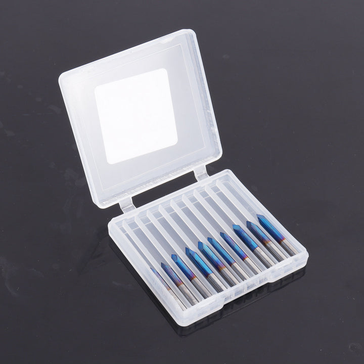 10pcs x 0.1mm 60 Degree Triangular Pyramid CNC Engraving Router Bits, 1/8" Shank