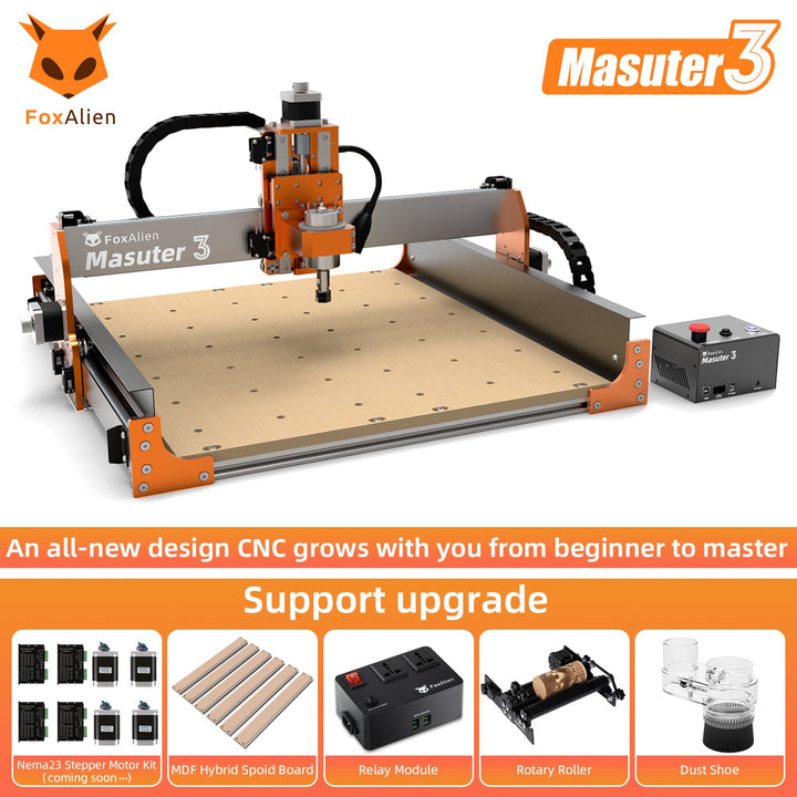 As always, the Masuter 3 supports larger spindle upgrade and will have its extension kit. In this latest generation, we will provide a NEMA23 stepper motors upgrade kit. With the NEMA23 stepper motors upgrade kit, Masuter 3 will have stronger torque to handle hard material. Users can choose different upgrade kits according to their needs and budget.