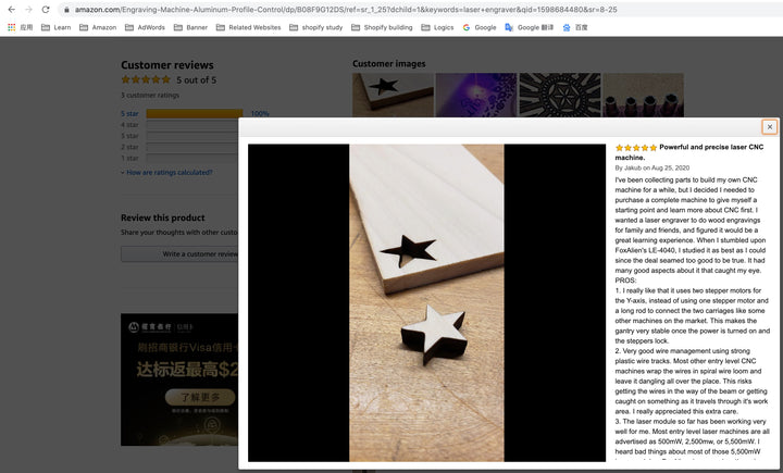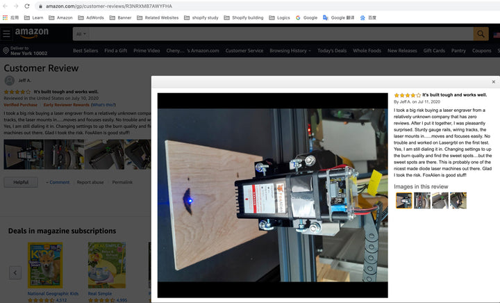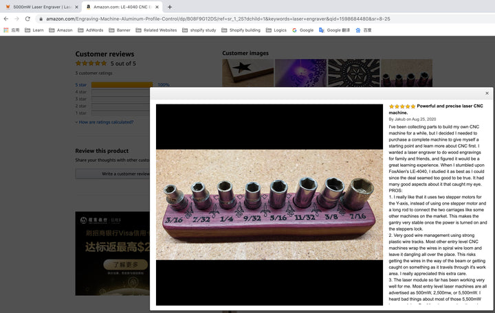I took a big risk buying a laser engraver from a relatively unknown company that has zero reviews. After I put it together, I was pleasantly surprised. Sturdy gauge rails, wiring tracks, the laser mounts in......moves and focuses easily. No trouble and worked on Lasergrbl on the first test.