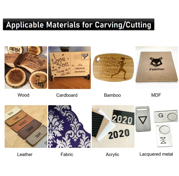 Capable to Handle Many Kinds of Material】Laser engraver can engrave, carve and cut different kinds of material such as wood, MDF, acrylic, cardboard, and leather etc.