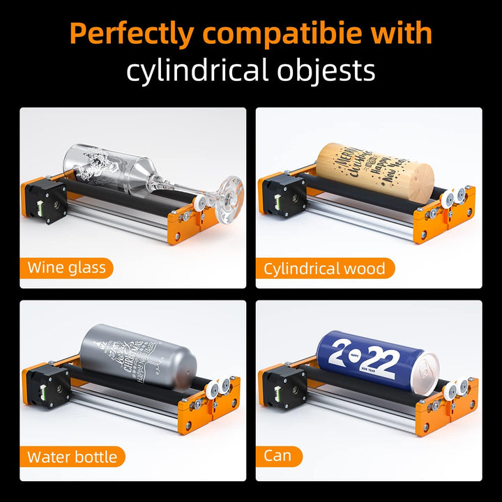 - This upgraded Y-axis rotary roller is designed for engraving cylindrical objects and curved surface such as wine glass, tumbler, and water bottle etc.