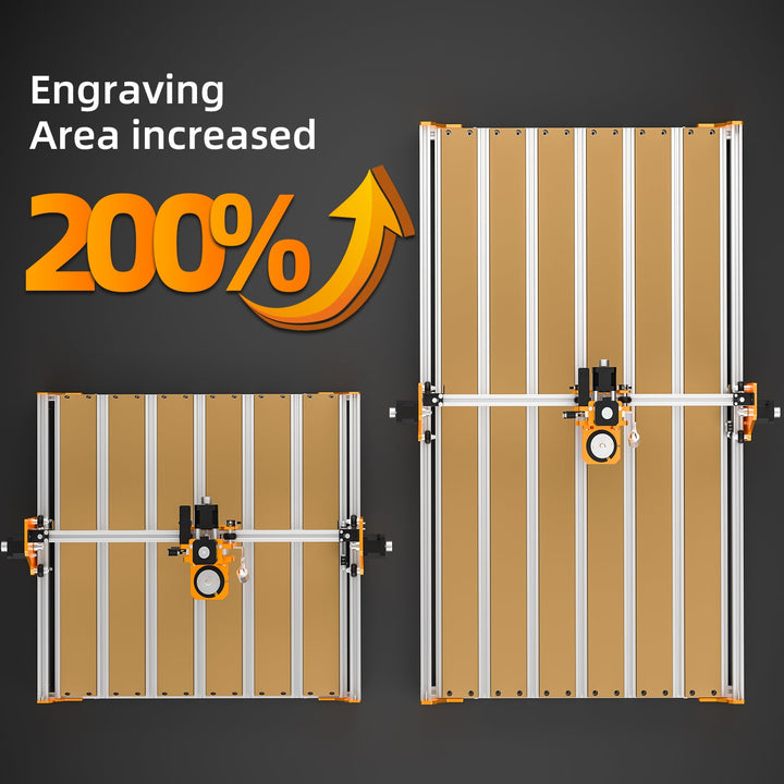 The FoxAlien Extension Kit 4080 expands the working area of the Masuter Pro from 400mm x 400mm(15.75” x 15.75”) to 400mm x 800mm(15.75" x 31.5")