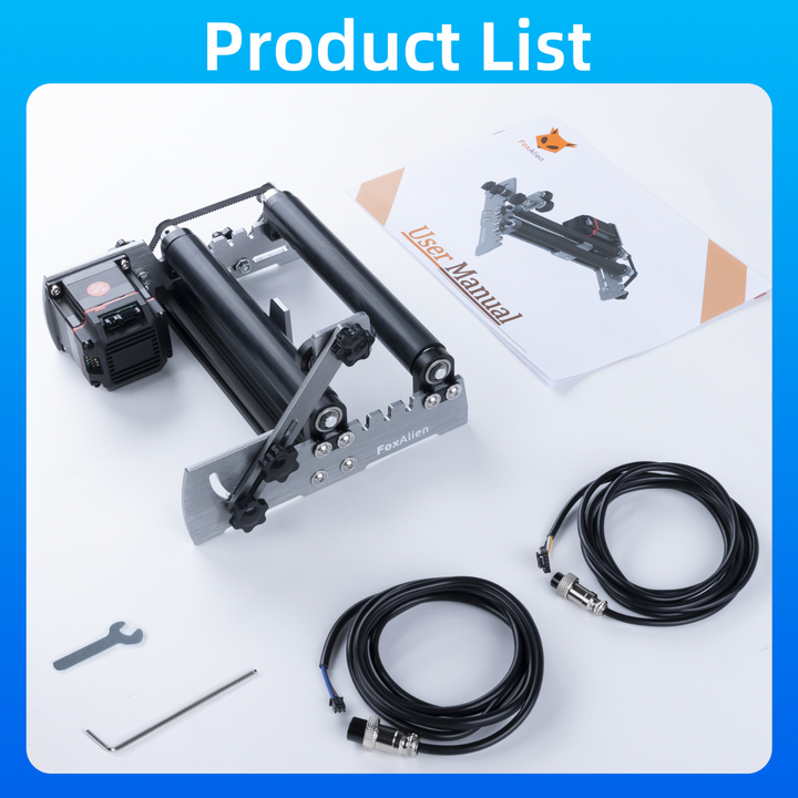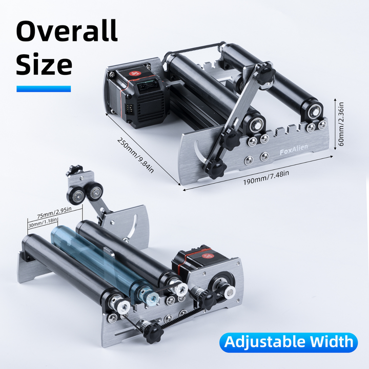 The FoxAlien New Rotary Roller R57-41 Engraving Module is designed for CNC Router XE-PRO, and CL-4x4 engraving machines to engrave cylindrical objects. It also compatible with the blue brand's CNC 4030-V2.