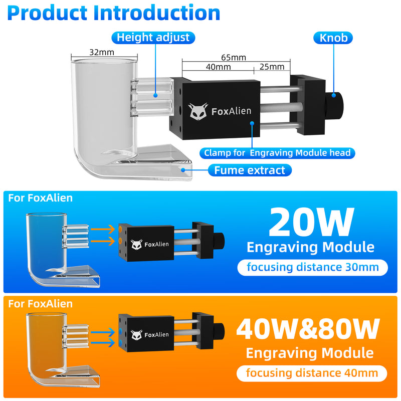 The FoxAlien Fume Hood Kit is designed for extracting and reducing smoke and smell when doing laser engraving. It can be compatible with all FoxAlien laser modules and most other brands' laser in the market. Due to the FoxAlien HFS-800 built in a carbon filter which is good for reducing odors, we recommend using the fume hood kit with the HFS-800.